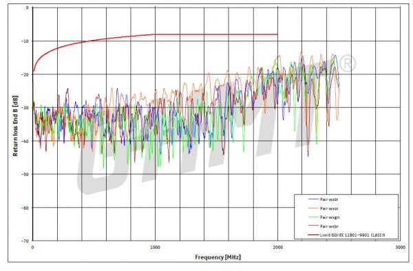 主要困擾整個(gè)行業(yè)的技術(shù)瓶頸就是在CAT8要求的2000MHZ范圍內(nèi)回波損耗會(huì)出現(xiàn)超過(guò)標(biāo)準(zhǔn)要求的最大尖峰,大部分廠商的產(chǎn)品會(huì)出現(xiàn)在1100-1300MHZ.嘉興海棠電子有限公司竟然解決了這個(gè)問(wèn)題,并且把頻率擴(kuò)展到了2500MHZ,這是GHMT非常驚訝和佩服的地方,是全世界絕無(wú)僅有的,GHMT在發(fā)出認(rèn)證的同時(shí)迅速派了專家到嘉興海棠電子進(jìn)行交流和學(xué)習(xí)。