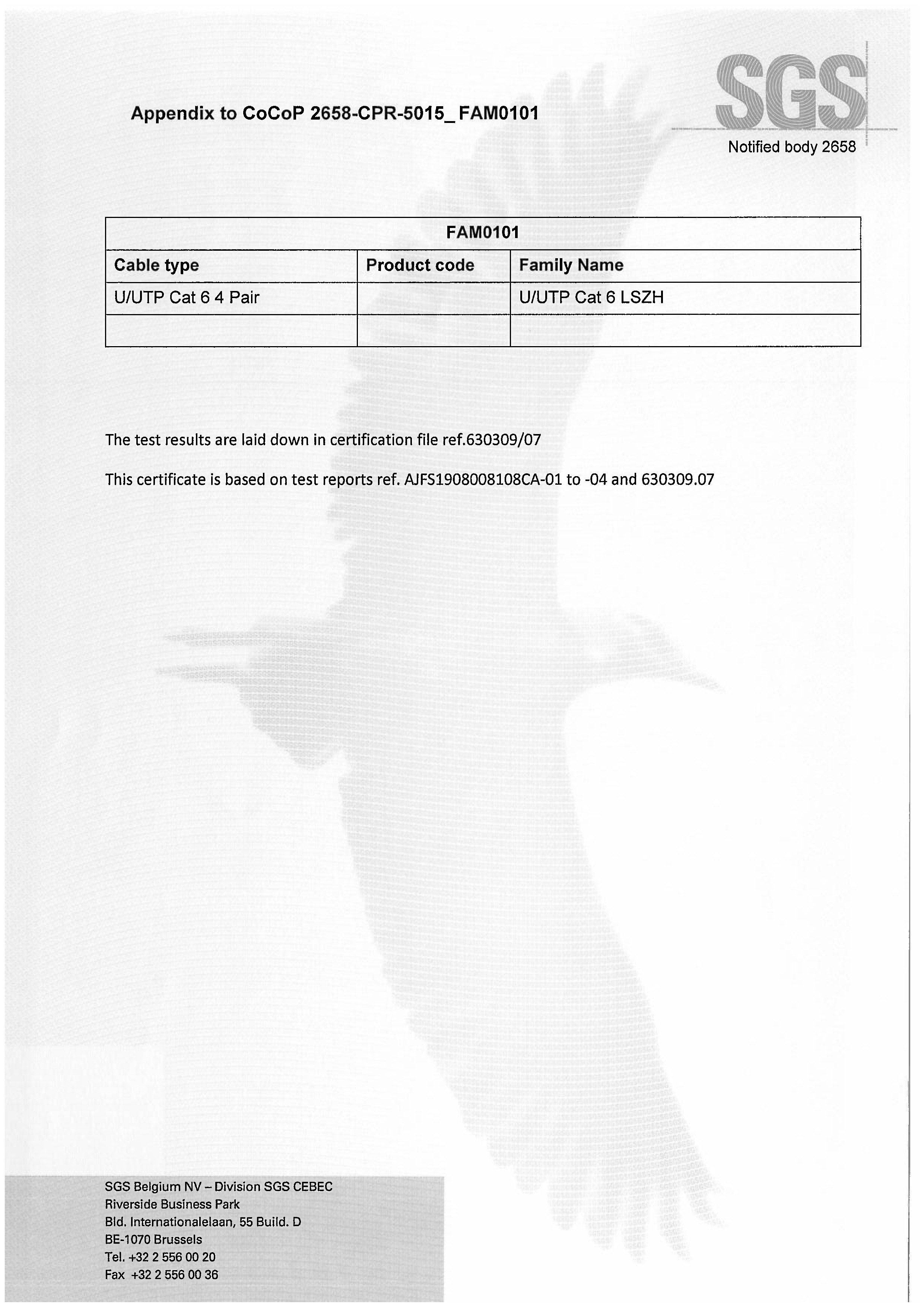 UUTP CAT6 LSZH SGS CPR B2級認(rèn)證